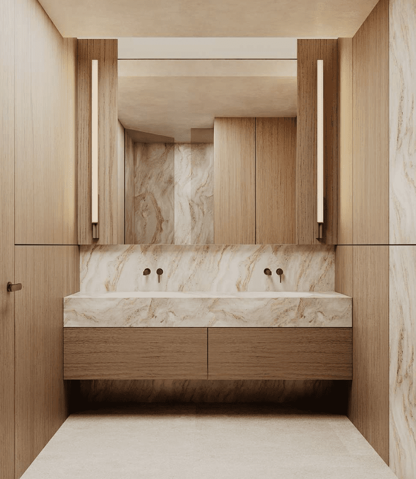 Auf rund 113 m² Wohnfläche entfaltet sich ein durchdachter Grundriss mit großzügigen Fensterflächen, zwei Balkonen und lichtdurchfluteten Räumen. Die offene Wohnküche bildet das Herzstück der Wohnung – perfekt für modernes Wohnen und stilvolles Entertainment. Hochwertige Materialien wie Naturstein, Holz und fein abgestimmte Farbwelten schaffen eine Atmosphäre ruhiger Eleganz.