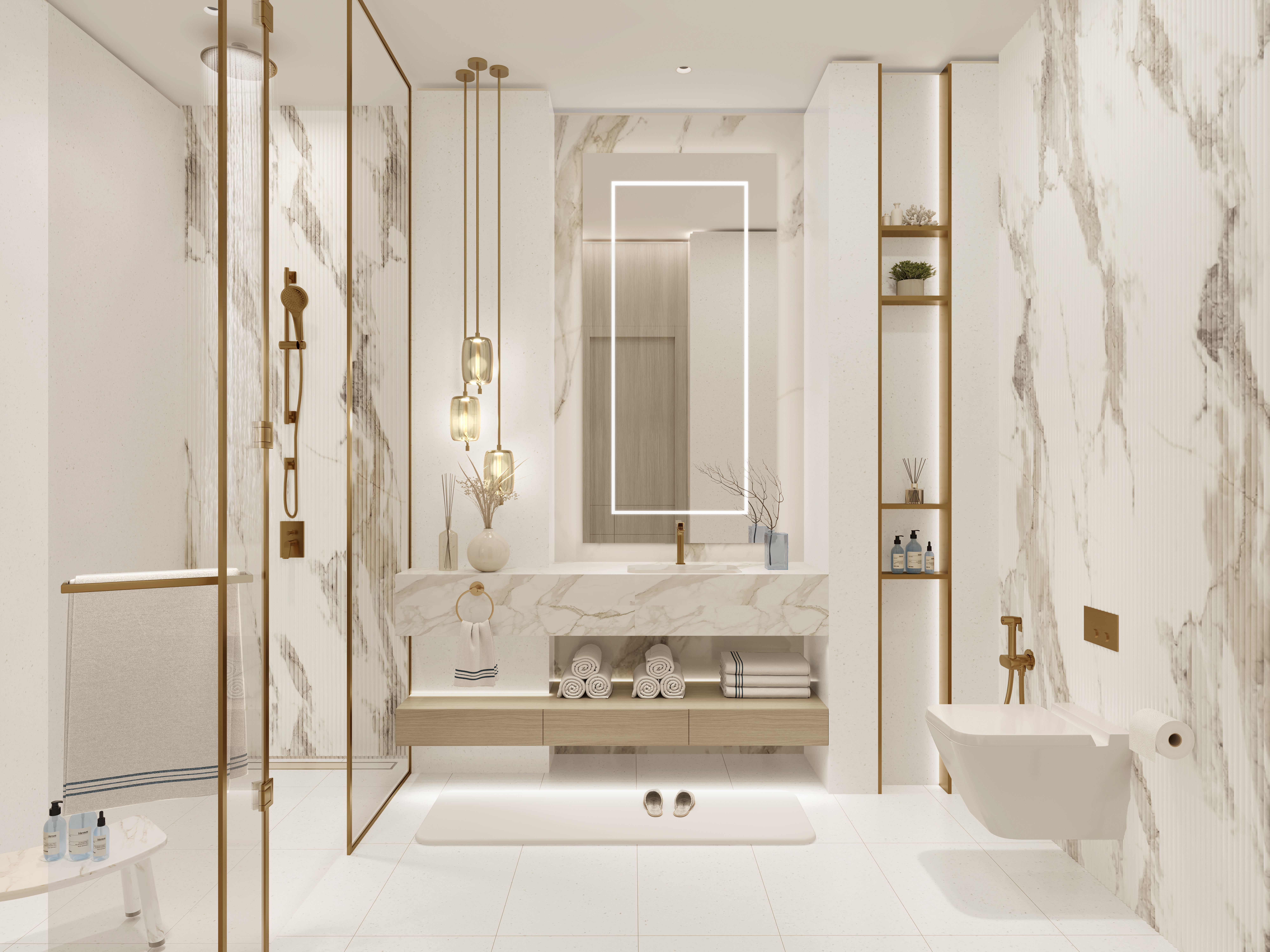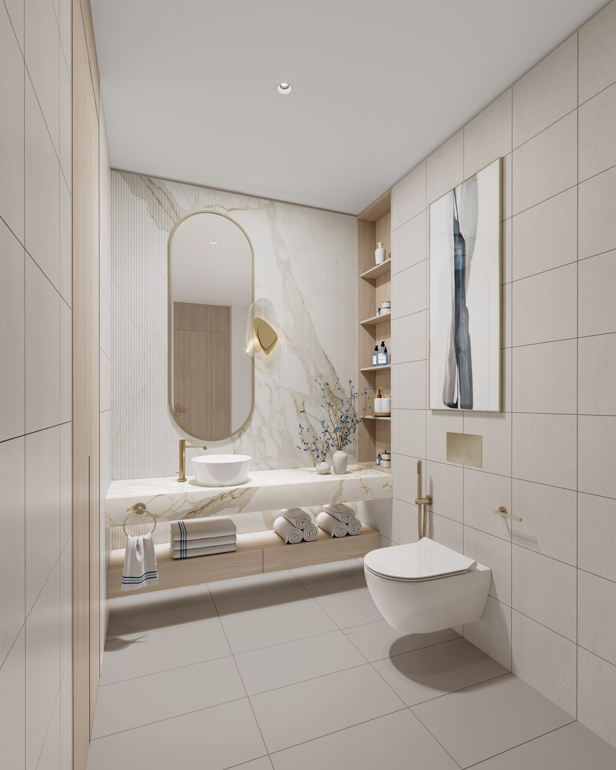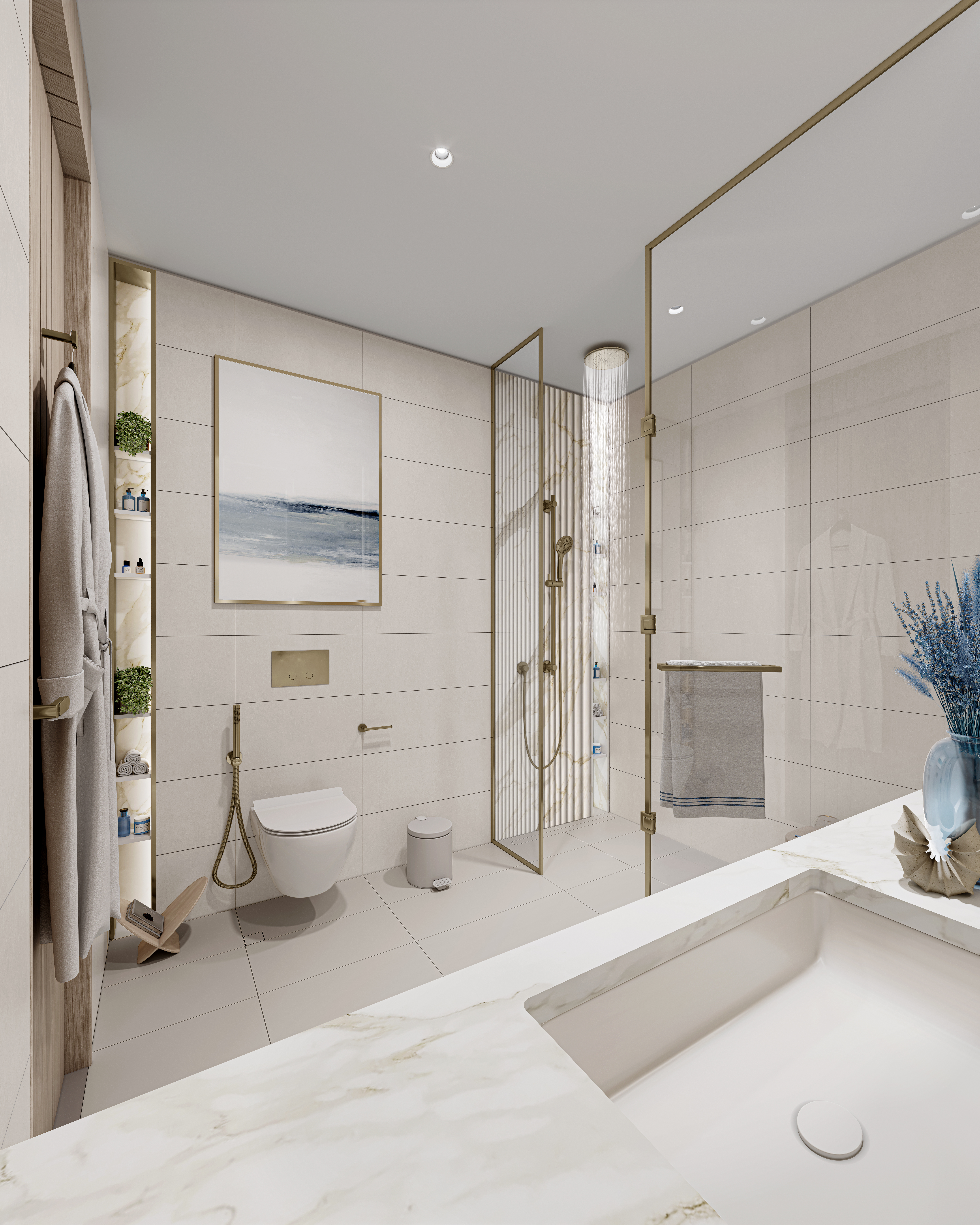 Die Innenräume von Beach Walk Grand 2 strahlen raffinierte Eleganz aus. Jede Residenz ist voll möbliert mit maßgeschneiderten Stücken und ausgestattet mit High-End-Marken wie Miele, Alexa und Villeroy & Boch, was eine nahtlose Verbindung von Smart Living, zeitlosem Stil und luxuriöser Funktionalität bietet.